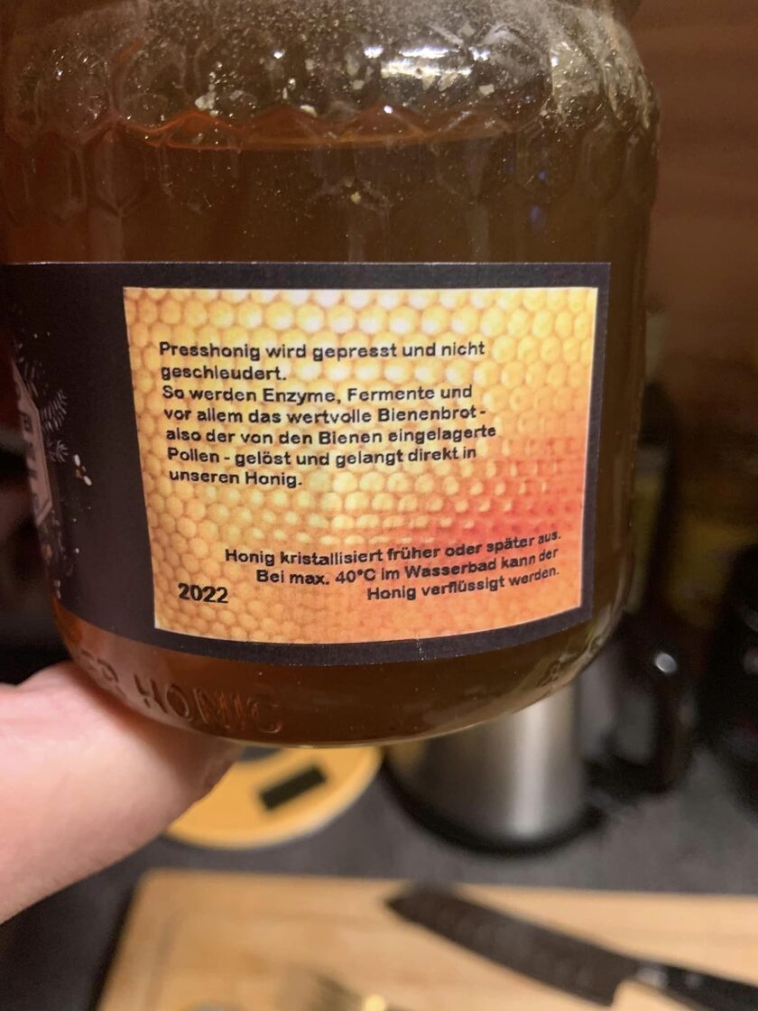 Honig besteht im Wesentlichen aus verschiedenen Zuckerarten, insbesondere aus Fructose und Glucose. Darüber hinaus enthält Honig organische Säuren, Enzyme und beim Honigsammeln aufgenommene feste Partikel (z. B. Pollenkörner). Honig kann flüssig, dickflüssig oder teilweise bis ganz kristallin sein. Die Kristallisation wird in erster Linie durch das Mengenverhältnis der im Honig vorhandenen Einfachzucker (Fructose und Glucose) sowie das Zuckerspektrum bestimmt. Honige mit einem hohen Glucose Gehalt (z.B. Raps-, Sonnenblumenhonig) kristallisieren rascher als jene mit einem hohen Fructose Anteil (z.B. Waldhonig). Das Kristallisationsverhalten eines Honigs wird aber auch vom Wassergehalt und der Lagertemperatur beeinflusst. Die Farbe des Honigs kann von beinahe farblos bis dunkelbraun reichen. Die Unterschiede in Farbe, Geschmack und Aroma werden vom jeweiligen botanischen Ursprung bestimmt. AGESDer bei uns in verschiedenen Glasgrößen erhältliche Bio Honig ist EU zertifiziert und stammt ausschließlich aus Wien-Inzersdorf. Der Stadthonig in Wien zeichnet sich insbesondere dadurch aus, dass keine Giftstoffe zB durch Spritzen von Feldern und Überdüngungen etc in das Naturprodukt gelangen können. Unser Blütenhonig wird gepresst nach alter Methode und nicht geschleudert - wir finden durch dieses aufwendigere Verfahren der Gewinnung bleiben sämtliche Inhaltsstoffe in höherem Ausmaß vorhanden. Dieses Mehr an Arbeit wird Euch begeistern ......